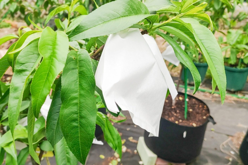 いい天気だったので、袋掛けをしました。
